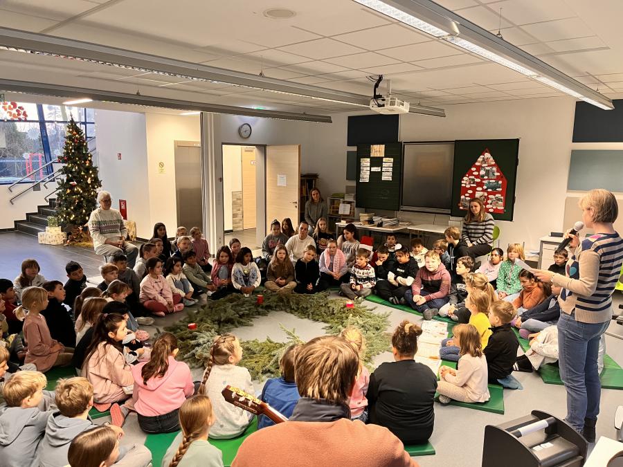Der letzte Montag vor den Weihnachtsferien wurde zusammen mit allen Mitgliedern der Schulgemeinschaft gestaltet. Eltern, Erziehungsberechtigte und Familienmitglieder waren eingeladen, um gemeinsam mit den Kindern weihnachtliche Lieder zu singen, Gedichten zu lauschen und Lichtertänze zu bestaunen. So ein stimmungsvoller Ausklang mit Dank für die gute und kooperative Zusammenarbeit im Jahr 2025 ließ alle entpannt in die Ferienzeit überleiten.