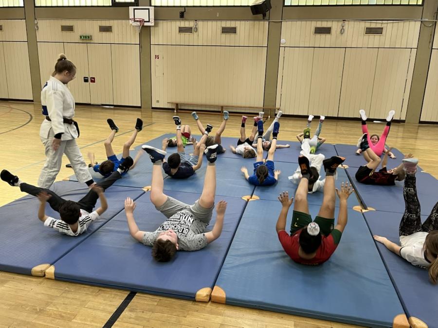 Der Tag begann mit einer traditionellen japanischen Begrüßung. Frau Bräse erklärte den Schülerinnen und Schülern die Bedeutung des Judo und die zentralen Werte wie Respekt, Disziplin und Freundschaft. Nach den Begrüßungen folgte ein gemeinsames Aufwärmen sowie eine Vertrauensübungen, um ein Gefühl für Teamarbeit und Sicherheit zu entwickeln.
